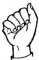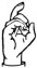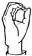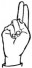 На ћирилици написано БОГДАН КРКИЋ састоји се из 11 слова [?]. Исписано ћириличном једноручном азбуком за глувонеме: